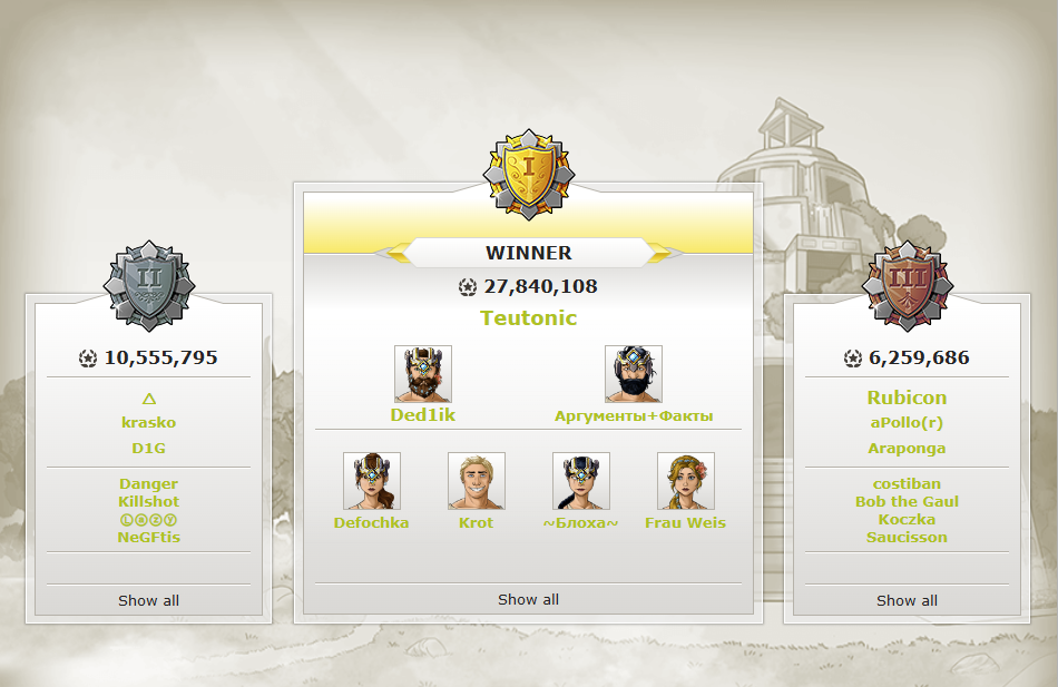 Congratulations to Teutonic – your dedication, strategy, and perseverance have paid off, and your deeds shall inspire generations to come! We extend our deepest gratitude to all participants, for this glorious championship would not have been possible without you. We are proud to immortalize our champions in this Hall of Fame.